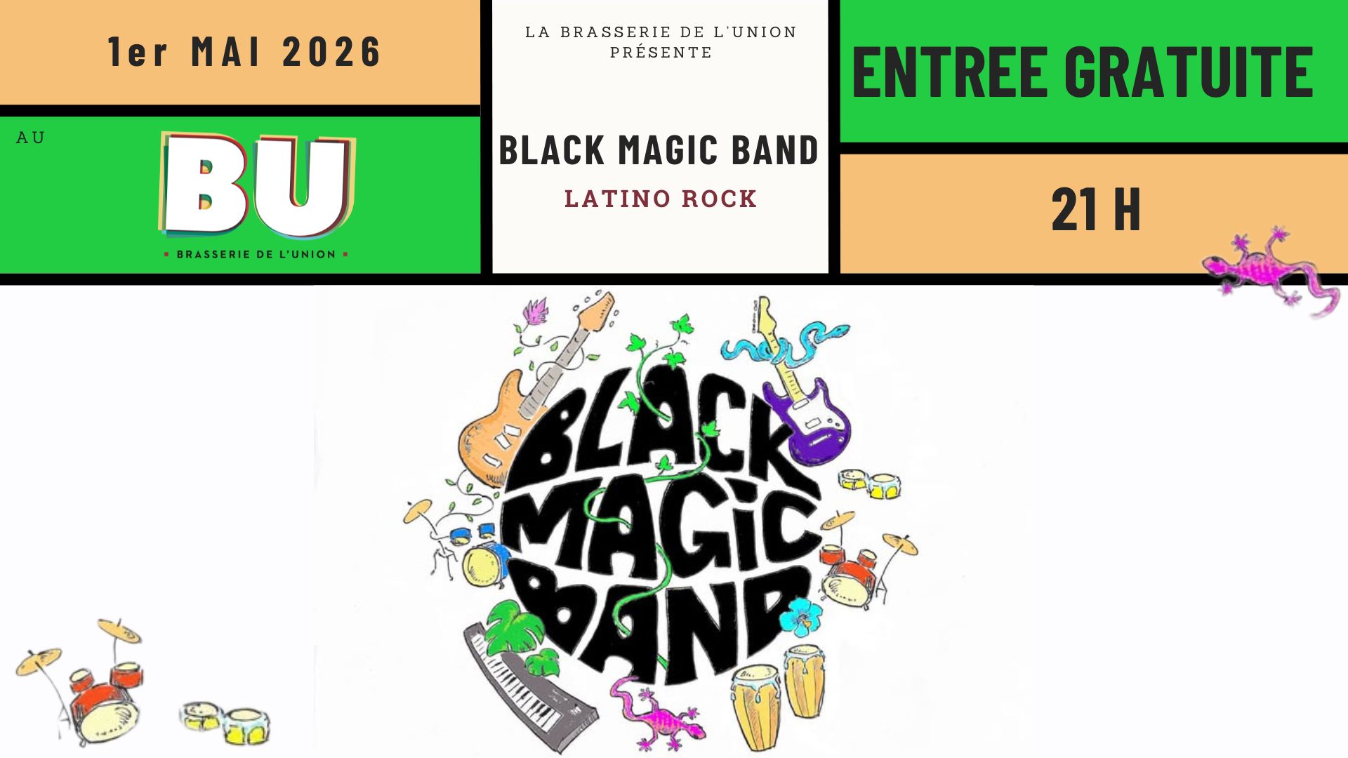 Concert incontournable avec Black Magic Band Le vendredi 1er mai, le TDU – Trait d’Union. Plongez dans un univers latino rock festif et envoûtant, idéal pour profiter d’un moment de musique live entre amis, en famille ou entre passionnés.